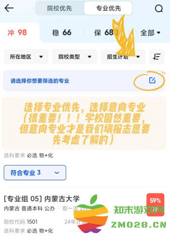 3,选择专业优先,填写意向专业(很重要!!!这一步很重要,院校专业录取分数才能决定你未来的就读专业和就业方向,所以一定要认真填写)