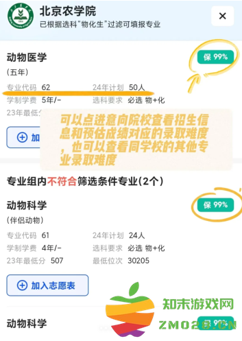 其次看趋势,各个专业点进去能看到往年位次变化,招生人数变化,要是位次持续走高,给你99%也要留个心眼,这是要靠自己评估的部分;