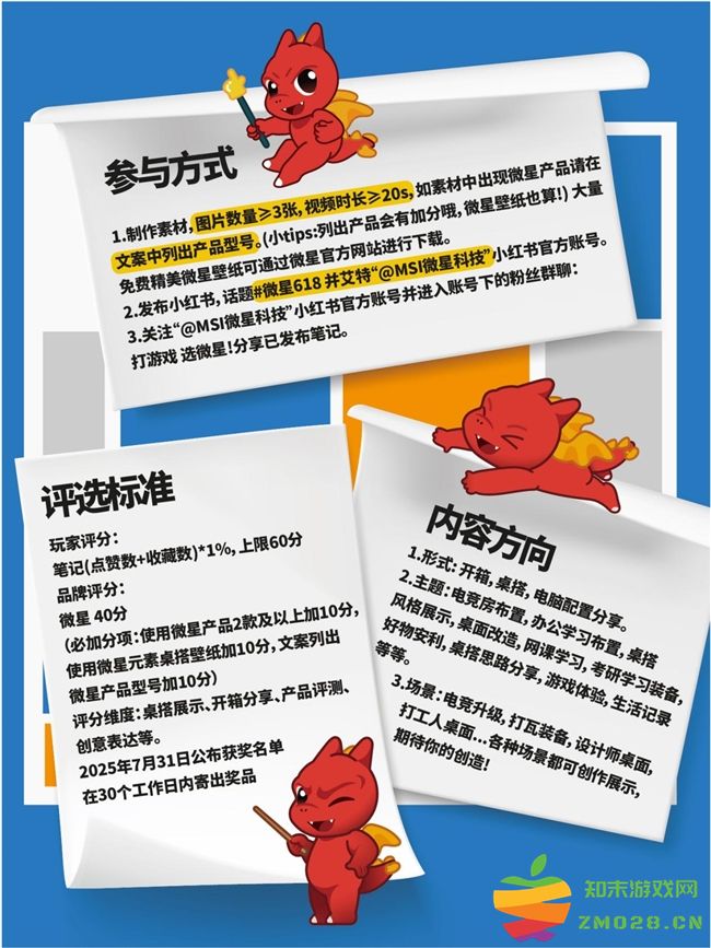 2. 创作精彩内容:在2025年6月1日至7月15日期间,使用你的小红书账号发布图片或视频笔记,带上#微星618。内容形式不限——可以是激动人心的开箱瞬间、精心布置的桌面美学,或是产品性能的直观展示。核心要求:清晰包含你购买的微星产品元素!(温馨提示:原创至上,严禁抄袭哦!)