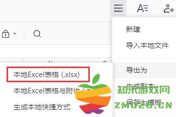 3、在下拉菜单中选择“导出为”,然后点击本地Excel表格(.xlsx)。