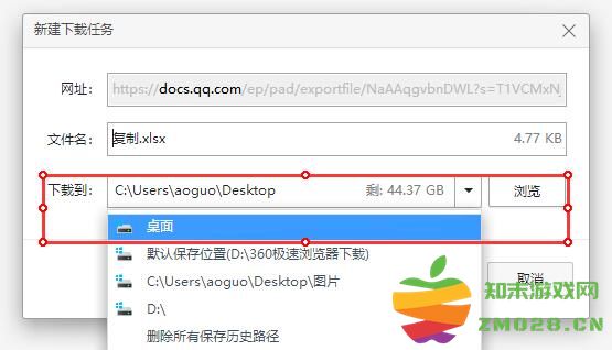4、在弹出窗口中将保存路径设置到桌面,点击下载即可。