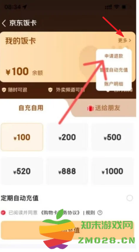 3,进入之后再最上面的京东饭卡那点击更多---申请退款;